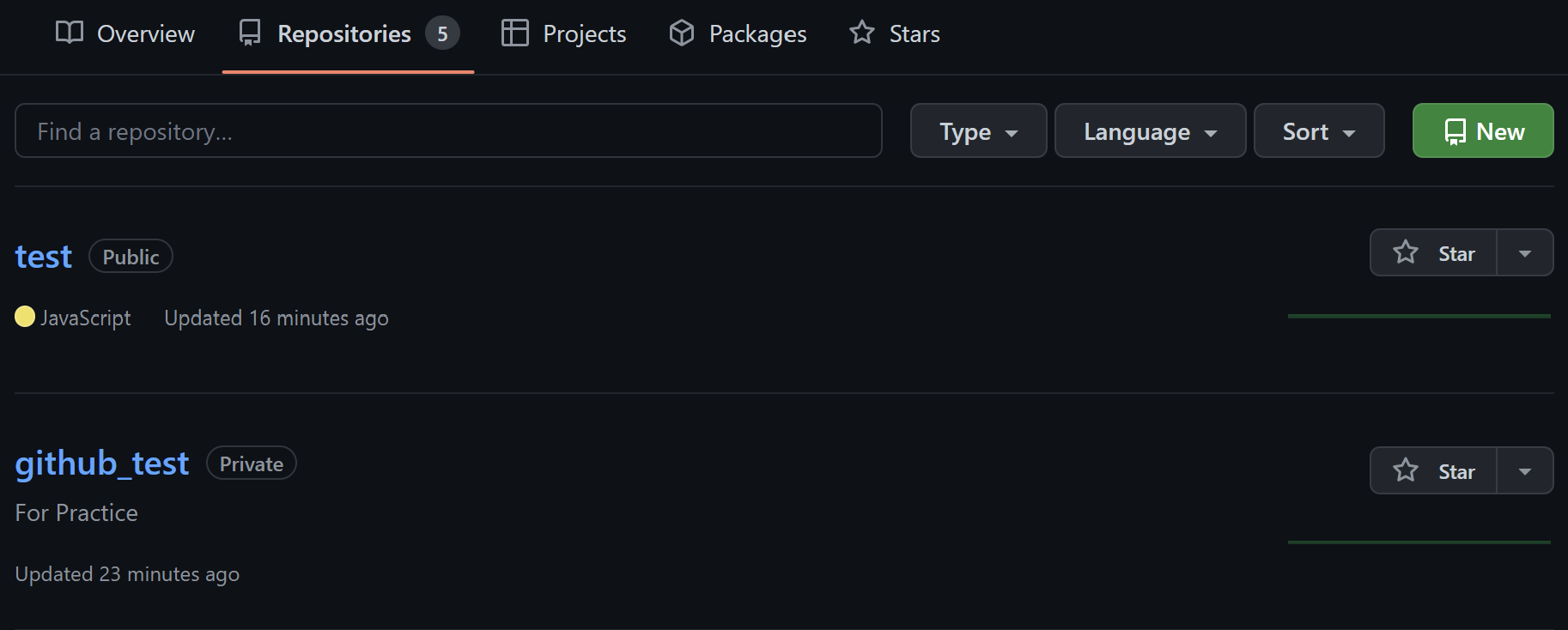 1. 앞서 설명했었던 Clone repository 밑에 Create new repository를 눌러준다.