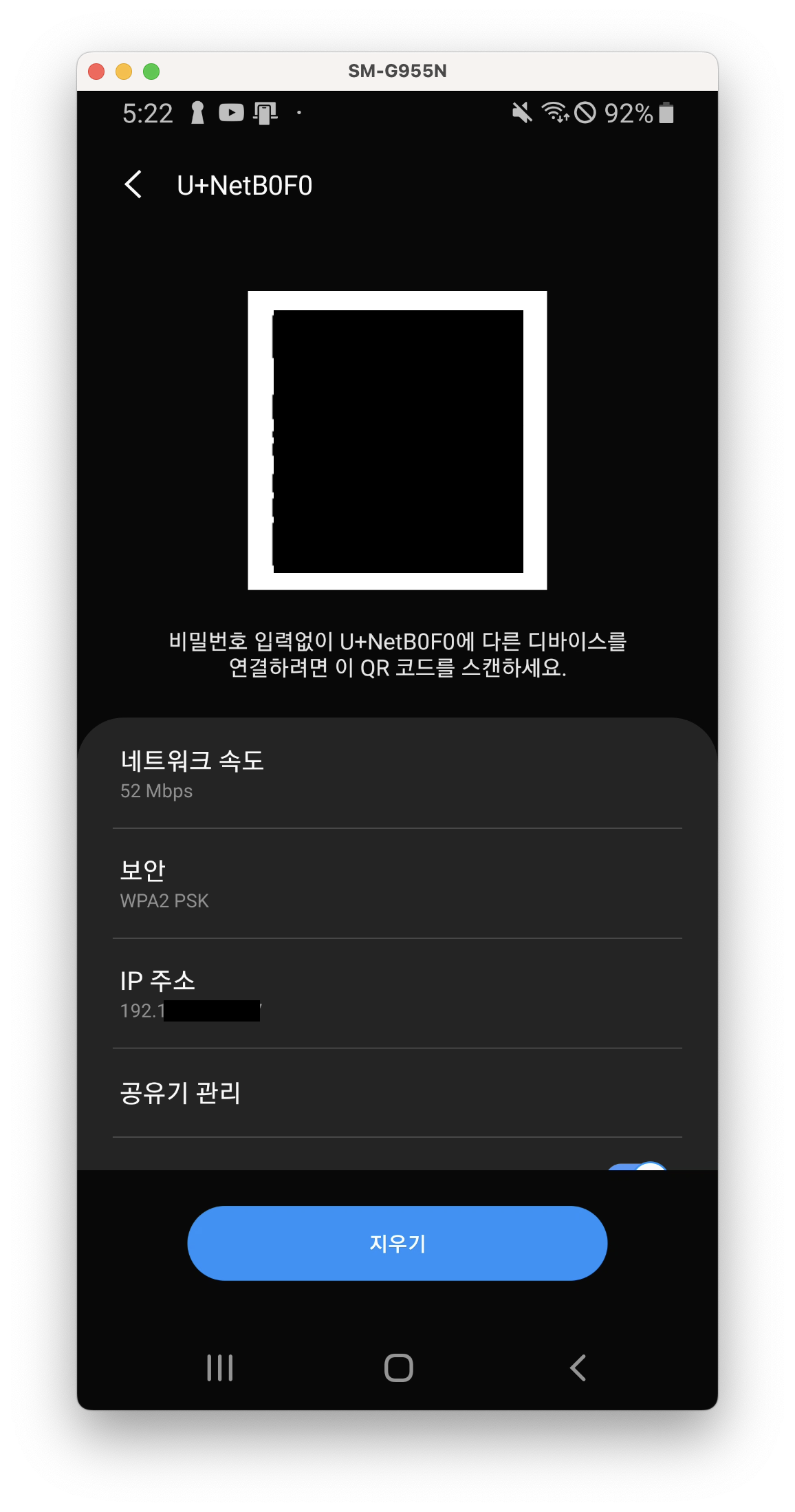 기기의 IP 주소는 '설정 - 연결 - WiFi - 현재 네트워크' 로 들어가게 되면 아래와 같은 화면이 보이게 된다.