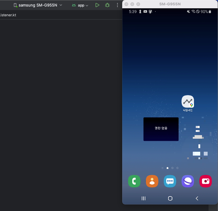 Android Studio에서 미러링 화면을 우측에 배치하여 디버그 한 앱을 바로 확인해 볼 수 있다.