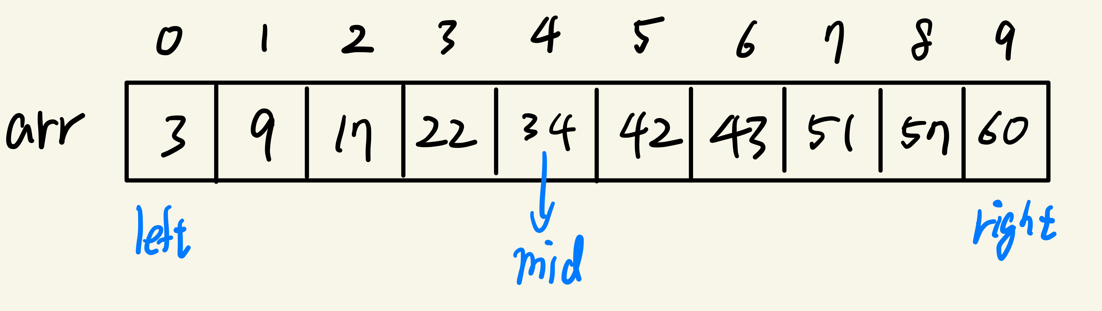 이 경우 mid의 index는 (left + right) / 2 가 된다.
