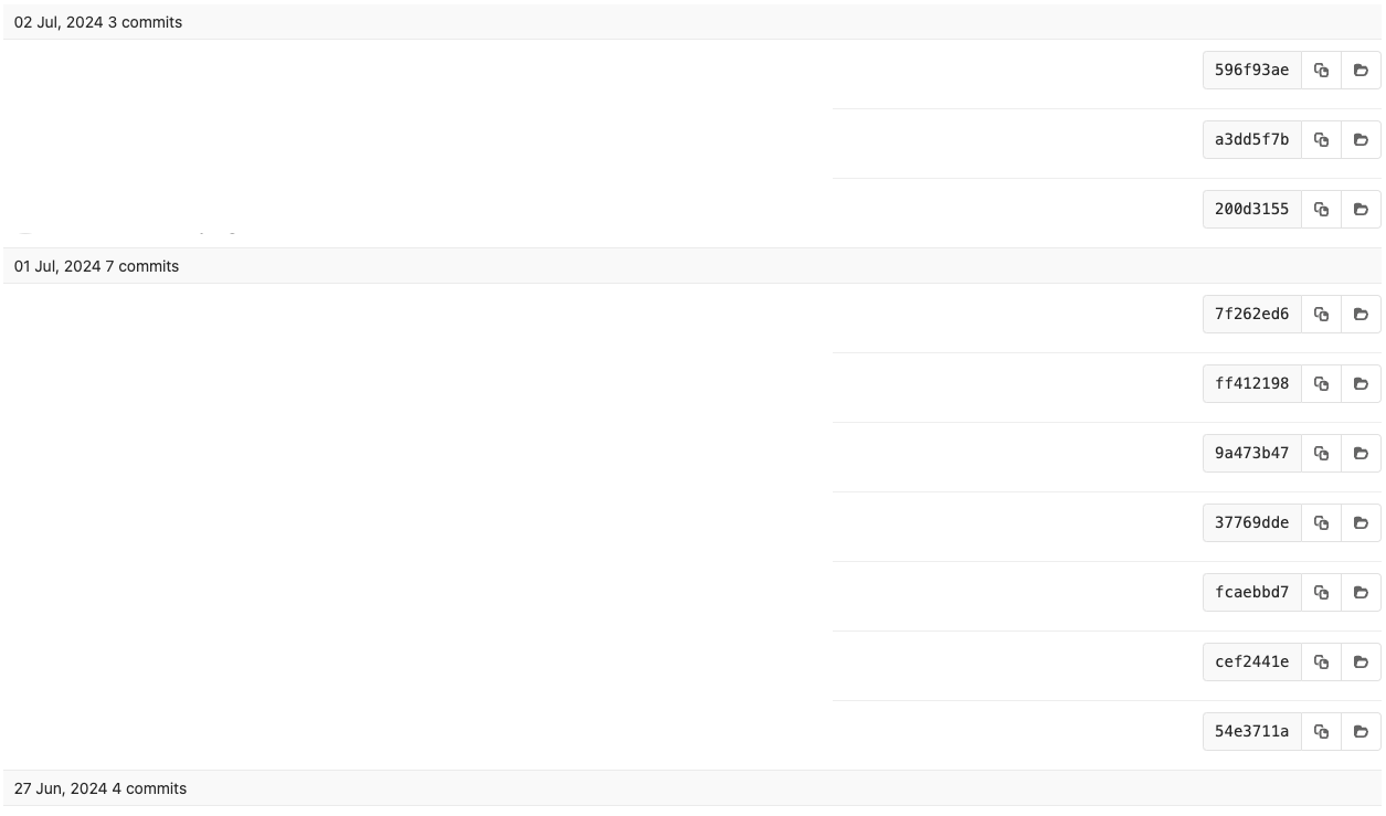 Repository -> Commits를 클릭하면 github와 마찬가지로 과거 Commit들이 나오게 된다.