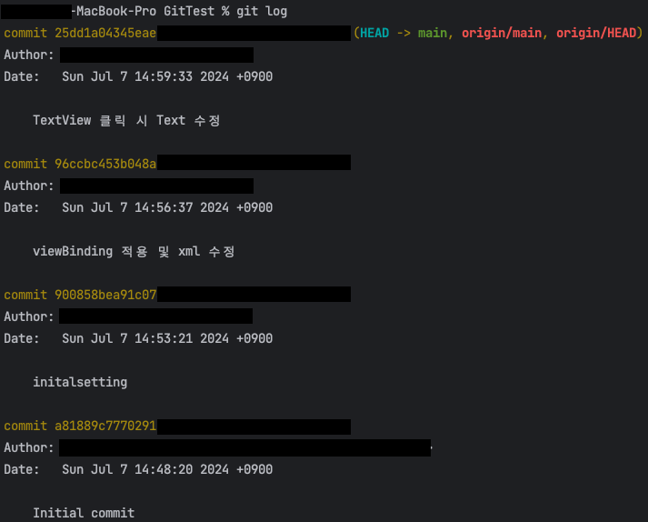 1. 터미널에 git log를 통해 Commit Id를 확인하자